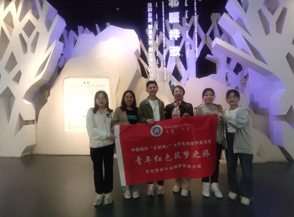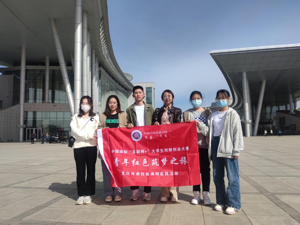 傳承紅色基因,接受思想洗禮,了解國情民情,傳承中華民族傳統文化,是“紅旅”始終不變的底色。為深入貫徹落實習近平總書記給第三屆中國“互聯網+”大學生創新創業大賽“青年紅色筑夢之旅”大學生重要回信精神,提升大學生創新創業能力,加快培養創新創業人才,縱深推進大眾創業萬眾創新,4月16日上午,我校大學生創新創業團隊“民藝承襲”項目團隊一行6人在創新創業學院實訓部主任多榮娜帶領下,赴內蒙古博物院開展“青年紅色筑夢之旅”文化傳承調研社會實踐活動。
