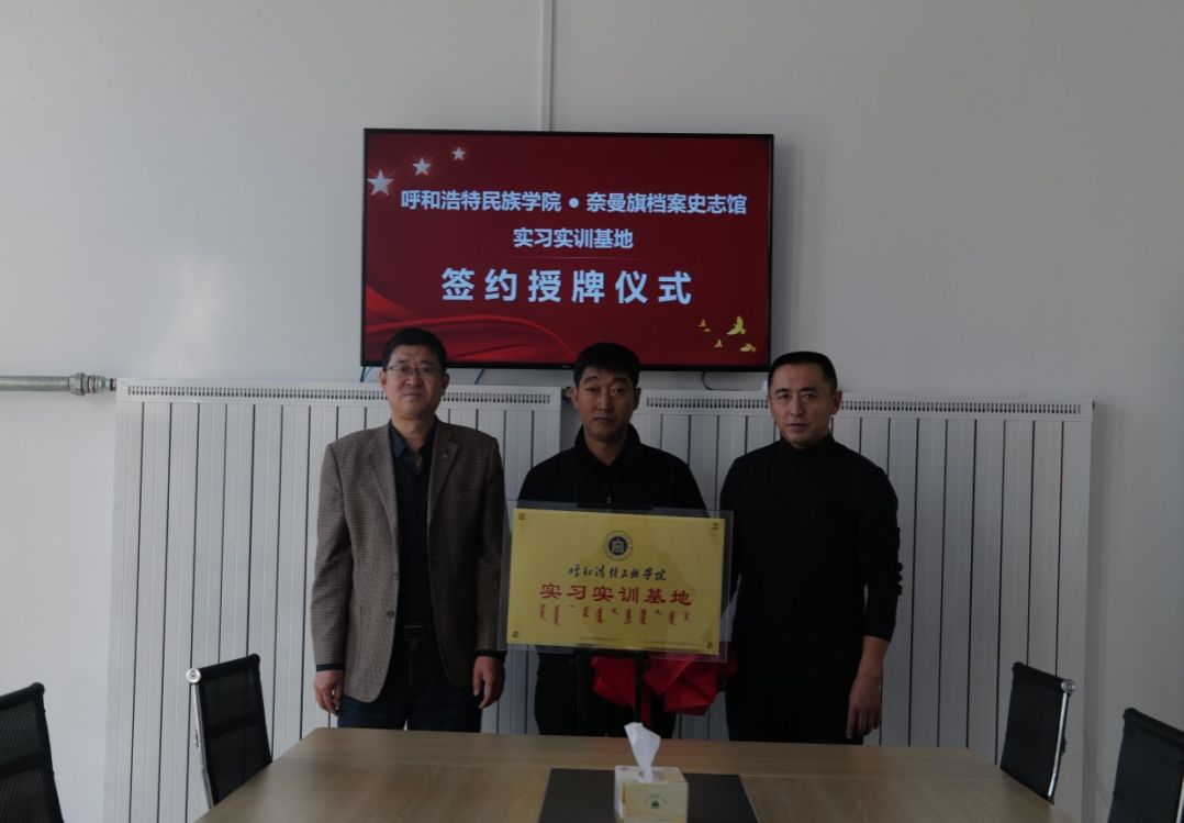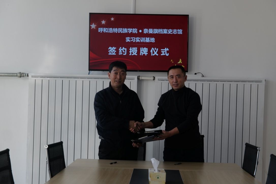 11月1日,在奈曼旗檔案史志館舉行實習實踐教學基地簽約儀式,奈曼旗委辦常務副主任、檔案局局長李海文和旗檔案史志館館長李樹文等相關人員參加。