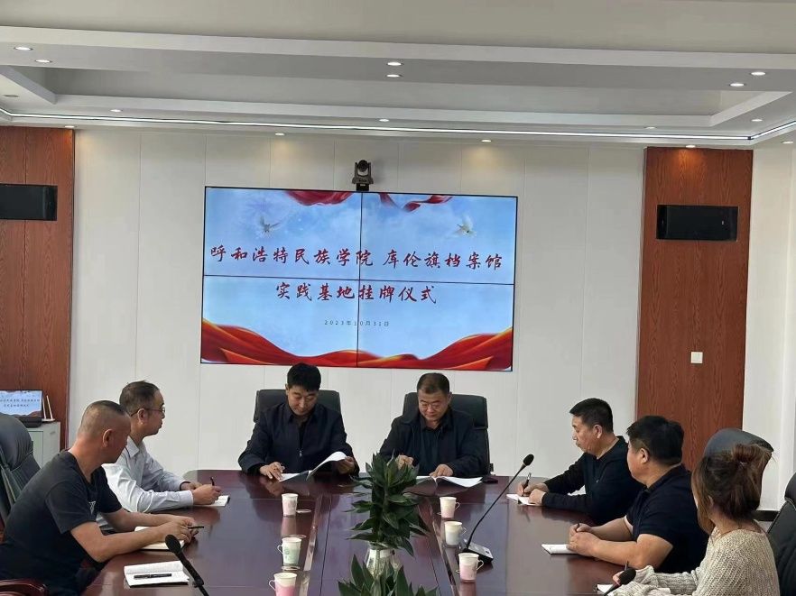 10月31日,在庫倫旗檔案史志館舉行實習實踐教學基地簽約儀式,庫倫旗檔案史志館館長于鳳來等相關人員參加。