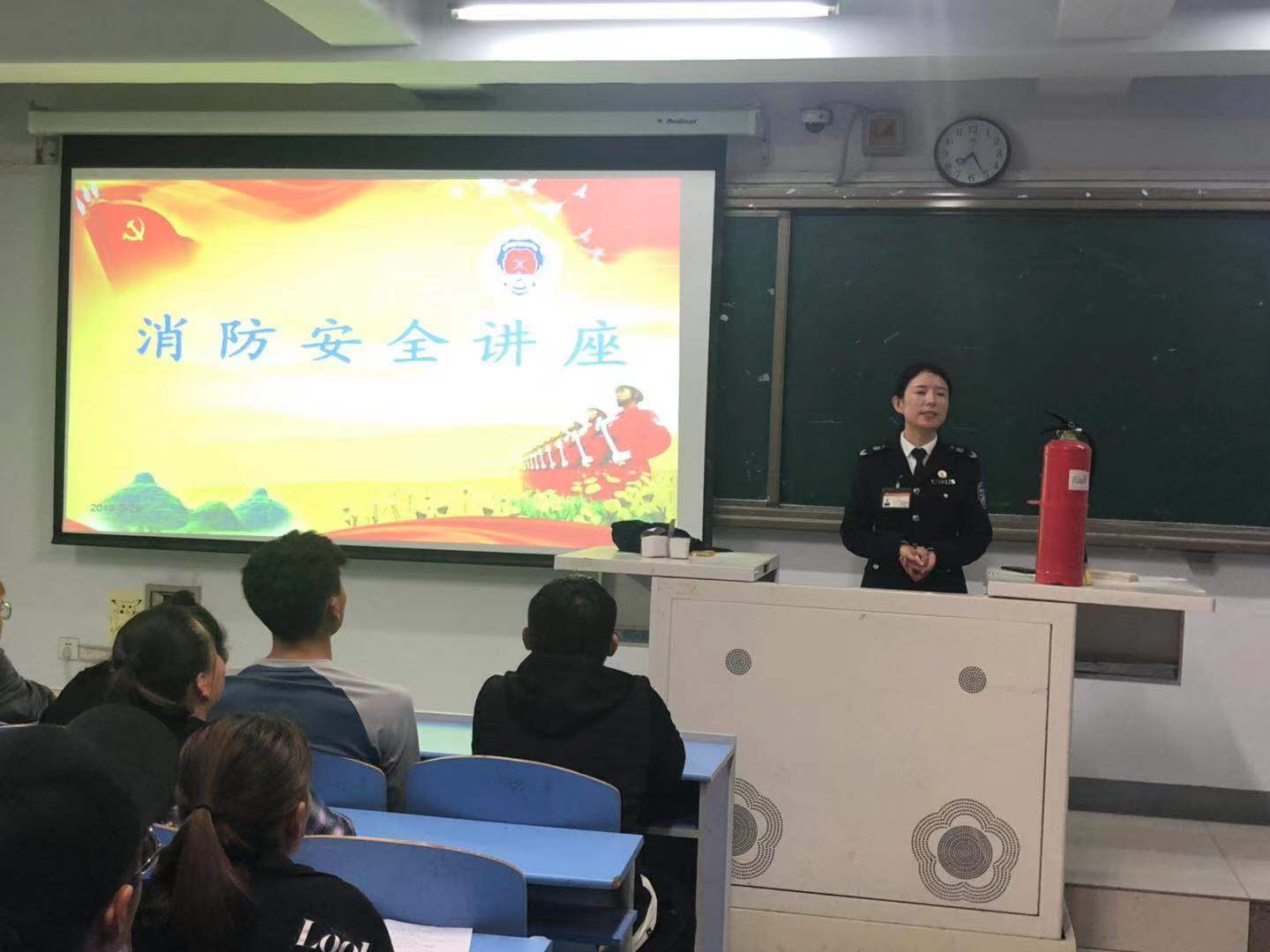為增強學生消防安全意識,進一步普及消防安全知識與技能,構建和諧校園,9月29日晚,公共管理學院、馬克思主義學院通過保衛處邀請內蒙古消防協會,在都林樓406教室開展了消防安全講座。公共管理學院、馬克思主義學院2019級全體新生及各班消防安全聯絡員聆聽講座。張雪教員借助PPT課件演示,提問互動等形式,通過觸目驚心的圖片、視頻,一個個真實而又發人深省的案例,就學生公寓如何逃生避險、如何報火警、火災的預防和應急處理、消防器材的正確使用等方面進行了深入淺出地講解。