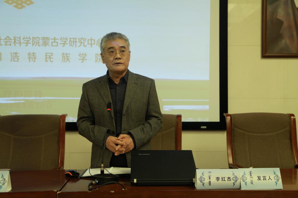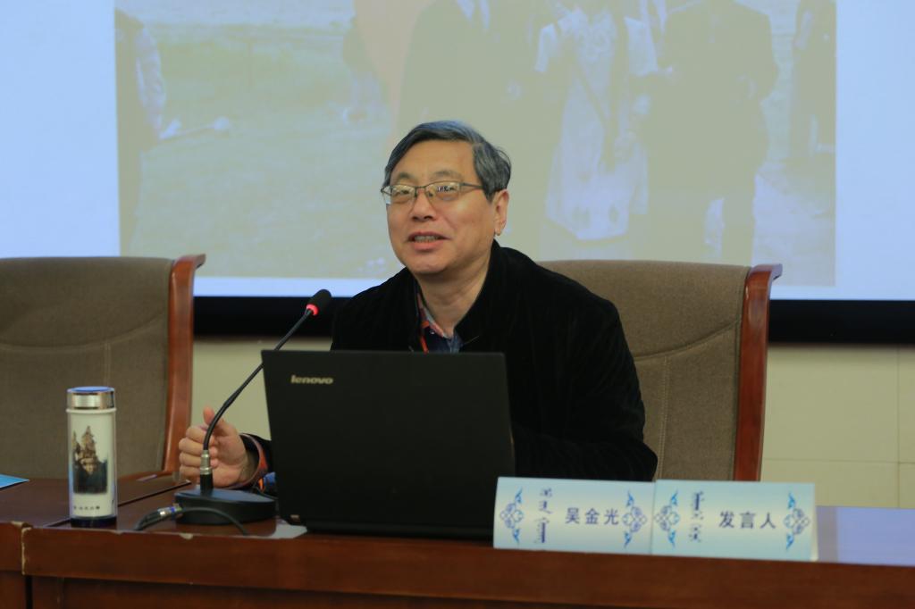 “蒙古族民俗文化與一帶一路國家的民心相通”研究課題是內(nèi)蒙古自治區(qū)政府委托的“發(fā)掘蒙古族歷史文化,服務(wù)‘一帶一路’建設(shè)”重大科研項目的子課題。為推進(jìn)項目研究工作,由中國社會科學(xué)院蒙古學(xué)研究中心和我校聯(lián)合主辦的“民俗文化與一帶一路國家的民心相通”學(xué)術(shù)研討會,于3月30日在學(xué)校圖書館一樓報告廳召開。內(nèi)蒙古自治區(qū)政府副秘書長石墨、中國社會科學(xué)院民族文學(xué)研究所黨委書記朝克研究員、國家民委國際合作司原副司長吳金光、國家民委民族研究中心原副主任李紅杰、國家發(fā)改委國際合作中心執(zhí)行總監(jiān)郭寧林、西部開發(fā)研究院副院長火照程、中國社會科學(xué)院蒙古學(xué)研究中心主任色音、學(xué)校黨委書記孫國權(quán)、校長格日樂圖、副校長阿拉坦倉出席。會議由色音研究員主持,40余位相關(guān)領(lǐng)域?qū)<覒?yīng)邀參會,我校部分教師旁聽了會議。