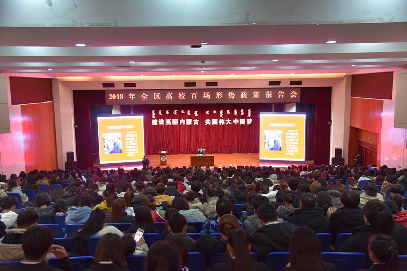 在全區(qū)上下深入學(xué)習(xí)貫徹習(xí)近平新時代中國特色社會主義思想、黨的十九大精神、全國教育大會和全國全區(qū)思想政治工作會議精神之際,隆重慶祝改革開放40周年之時,12月27日下午,自治區(qū)黨委宣傳部高文鴻副部長蒞臨我校為師生作了形勢政策報告。自治區(qū)黨委宣傳部高校企業(yè)處孫國銘處長出席,學(xué)校黨委中心組成員、副處級以上干部、全體兩課教師、思政人員,學(xué)生代表共計750余人聆聽了報告。報告會由學(xué)校黨委書記孫國權(quán)主持。