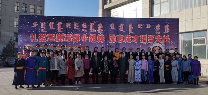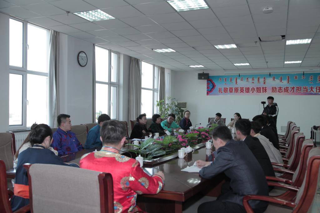 胡春梅副書記、阿拉坦倉副院長與草原英雄小姐妹及學生代表合影