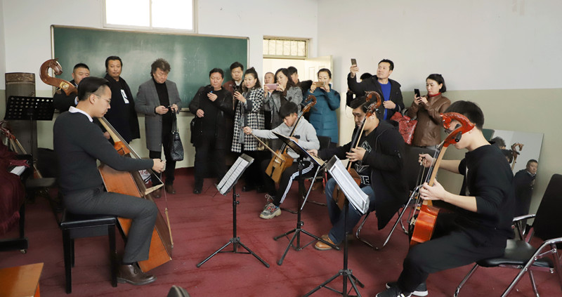 交流期間,蒞臨領導與旗縣烏蘭牧騎代表還前往我校校史館、音樂樓、演播廳和器樂教學場地進行了實地參觀。