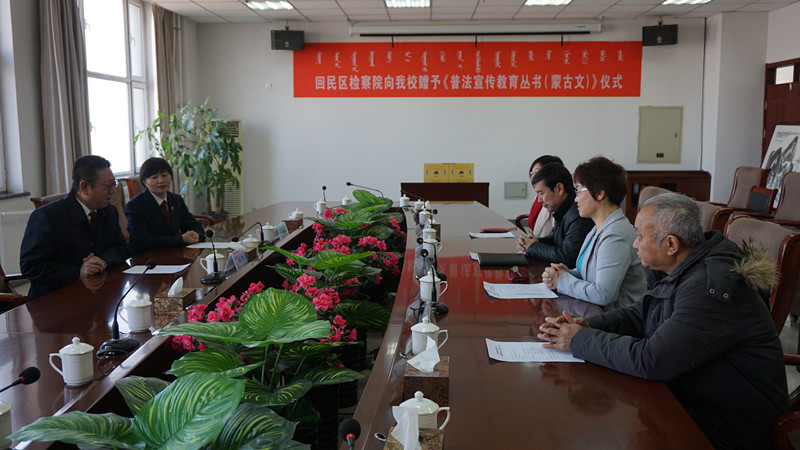 交流座談后,回民區(qū)檢察院為我校贈(zèng)送了2套《普法宣傳教育叢書(蒙古文)》(每套共36冊)。