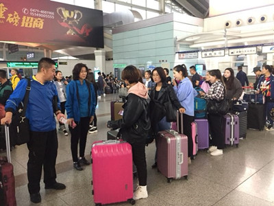 納麗娜副院長在機場與赴新疆實習支教學生交談