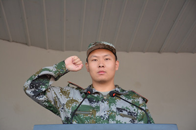 2018級新生賀鵬同學(xué)領(lǐng)讀軍訓(xùn)誓詞