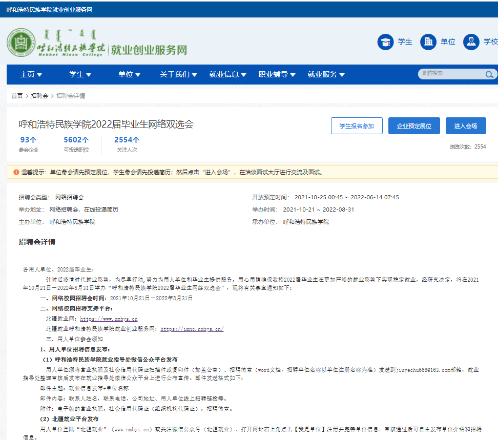 “同心共筑”2022屆畢業(yè)生高校聯(lián)合網(wǎng)絡(luò)招聘會(huì)暨少數(shù)民族畢業(yè)生專場(chǎng)招聘會(huì)正在進(jìn)行中