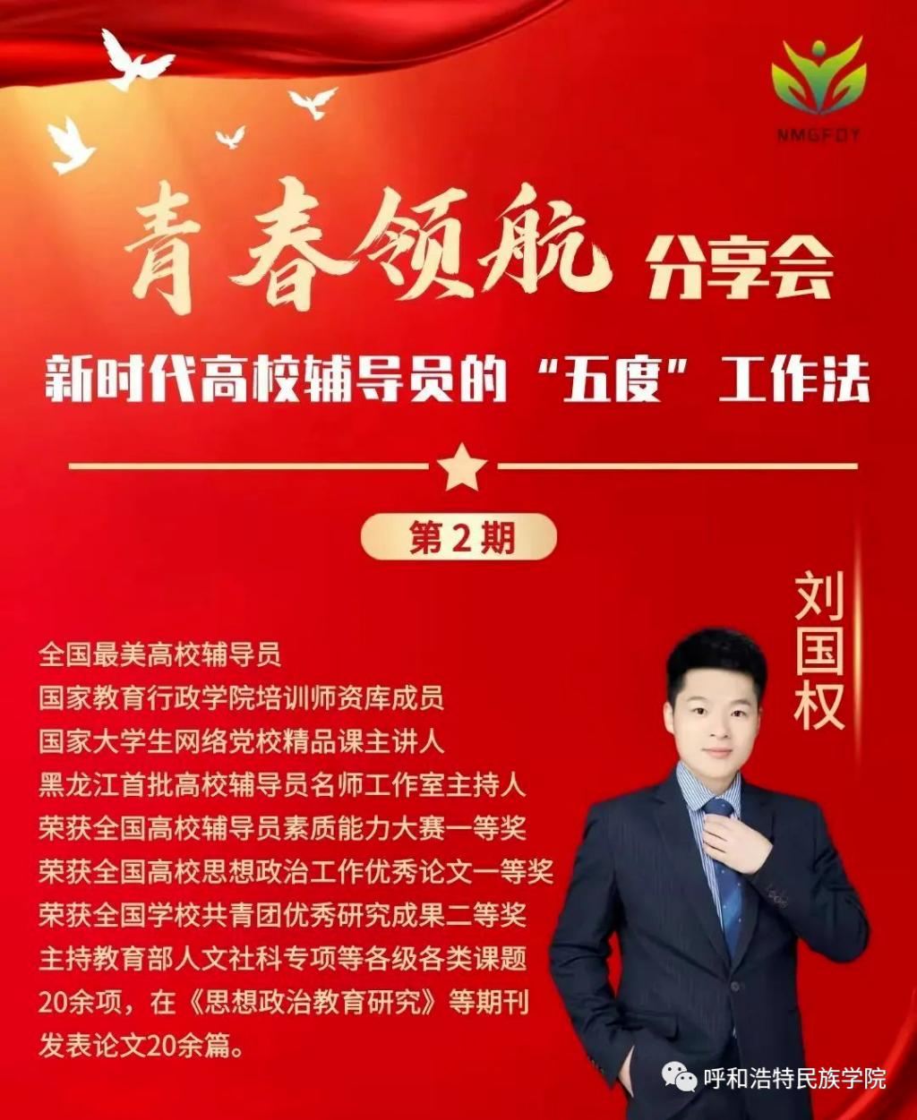 3月25日,內蒙古自治區黨委宣傳部、自治區教育廳、共青團內蒙古自治區委員會指導的“青春領航”分享會第二期開講。我校學生工作部組織全體輔導員在線收看。