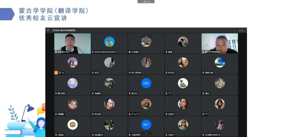 近日,蒙古學學院邀請13屆畢業生內蒙古蒙科立蒙古文化股份有限公司常務副總斯欽圖力古爾在線上為2023屆畢業生作創業講座。黨總支書記周雙喜主持講座。全院170余名同學聆聽了講座。