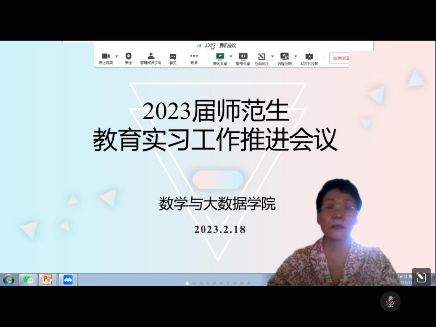 2月18日下午,數學與大數據學院組織2023屆小學教育專業和應用數學專業百余名學生和實習指導老師在線召開教育實習推進會。