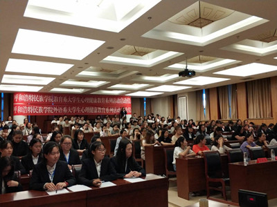 為增強(qiáng)大學(xué)生心理適應(yīng)能力和問(wèn)題應(yīng)對(duì)能力,號(hào)召大學(xué)生關(guān)注心理健康,培育理性平和的健康心態(tài), 6月13日19時(shí), 外語(yǔ)系、教育系在圖書(shū)館一樓報(bào)告廳聯(lián)合舉辦2018年大學(xué)生心理健康教育活動(dòng)啟動(dòng)儀式暨大學(xué)生心理健康教育知識(shí)競(jìng)賽決賽。教育系朝魯副教授、胡寶泉副教授、團(tuán)總支安梅琴,馬列教研部學(xué)工辦主任白寶花,外語(yǔ)系團(tuán)總支韓爭(zhēng)運(yùn)參加啟動(dòng)儀式并擔(dān)任本次決賽評(píng)委。各班心理委員及部分參賽系(部)學(xué)生代表近200人參加活動(dòng)。