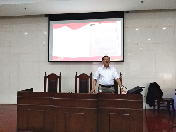 烏峰教授重點講解了《實踐論》、《矛盾論》寫作背景及主要內容。烏教授講到2017年是毛澤東同志《實踐論》、《矛盾論》發表80周年,習近平總書記作出重要批示,強調指出:學哲學、用哲學是我們黨的一個好傳統,我們學習《實踐論》、《矛盾論》,就是學習辯證唯物主義,學習馬克思主義哲學,學習中國共產黨人的世界觀和方法論。接著烏教授還從19個方面生動解讀了《十九大報告》,特別是深刻闡釋了中國特色社會主義進入了新時代和我國主要矛盾的轉變。