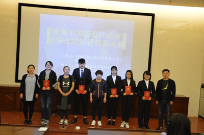最后,本次系列活動以“建設美麗中國我是行動者”主題知識競賽為收官,競賽首先于4月18日晚7時,在都林樓107教室舉行了初賽,并評出了五名表現優秀的系(部)晉級決賽;在4月28日晚,“建設美麗中國我是行動者”環保主題知識競賽決賽在圖書館一樓報告廳拉開了帷幕,比賽現場各系參賽選手團隊合作默契,最終教育系獲一等獎,漢語言文學系獲二等獎,環境工程系獲得三等獎,外語系、管理系獲得優秀獎。