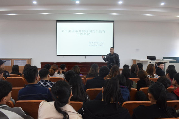 為了進一步加強學生安全意識教育,深入落實學校各項安全管理制度和措施,全面普及安全常識,消除安全隱患,美術系于4月8日在美術樓四樓階梯教室召開了學生安全教育會議。會議由美術系團總支書記白永泉主持,美術系學生會干部、各宿舍長參加了會議。