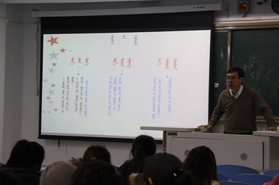 為進一步提升傳媒系師生學習十九大效果,12月19日晚,學校十九大精神宣講團蒙語宣講組成員、宣傳部部長巴圖吉日嘎拉在傳媒系作了題為《新時代、新思想、新目標》的十九大精神專題講座。傳媒系全體學生黨員、學生干部、普通學生代表80余人聆聽了講座。