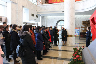 為認真學習貫徹黨的十九大精神,提升黨建知識與廉政知識學習效果,傳媒系創新學習模式,12月15日下午,傳媒系全體教職工與部分學生黨員、學生干部近50人受邀赴中國農業發展銀行內蒙古分行參觀學習。分行團委書記扎木蘇一行熱情接待了傳媒系師生,并全程帶領大家重點參觀了“黨建之家”和“廉政長廊”。