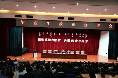 宣講會,首先邀請新疆維吾爾自治區和田地區策勒縣縣教工委副書記、教育局書記、副局長劉曉東同志為廣大師生詳細解讀新疆維吾爾自治區基礎教育鞏固階段大批量引進教師的政策措施,并就新進教師學習生活保障條件、薪酬待遇、社會秩序等方面進行了全面介紹。接著,朝格吉樂圖主任就“2018屆全國普通高校畢業生就業創業工作網絡視頻會”精神和林慧青副部長指出的“充分理解新時代教育戰線重要思想的重大意義,實現更高質量更加充分就業;多渠道就業市場導向和政府指導結合;鼓勵畢業生到邊緣山區和祖國需要的地方工作”等講話精神進行了解析。