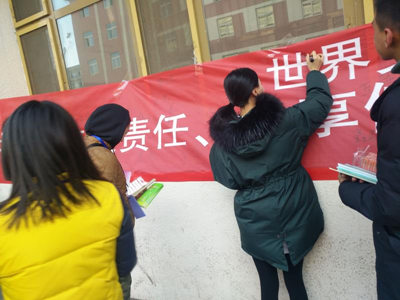 活動現(xiàn)場張貼本次“世界艾滋病日”的主題“共擔防艾責任,共享健康權力,共建健康中國”宣傳橫幅,并號召同學們在橫幅上簽名,共同為防艾事業(yè)做出鄭重承諾。另外通過發(fā)放宣傳折頁、傳單、撲克牌、筆記本等小禮品向學生們宣傳艾滋病的危害,提高防艾意識和自我保護能力,并在學校宣傳板張貼預防艾滋病知識海報進一步宣傳預防艾滋病的相關知識。