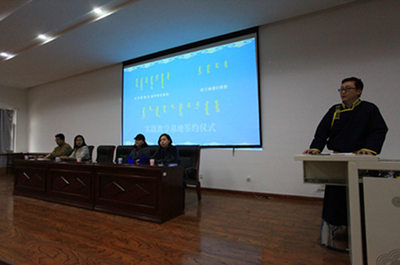 儀式首先由傳媒系副主任額爾敦畢力格致開幕詞。額主任強調(diào)了校企合作對學校教學效能的延伸、學生專業(yè)技能和業(yè)務素養(yǎng)的提高以及未來求職的重要意義,并對道日娜文化公司在行業(yè)領域內(nèi)所作出的成績予以了肯定,并期待此次合作。道日娜文化發(fā)展有限責任公司創(chuàng)始人道日娜女士通過相關影像資料對企業(yè)的相關情況作了全面的介紹,尤其是以女性創(chuàng)業(yè)者的視角分享了自己對民族文化理念的感悟與見解,希望在日后的合作當中與大家一道見證企業(yè)的未來愿景。