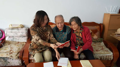 黨總支宣傳委員思勤為行動不便退休黨員送學
