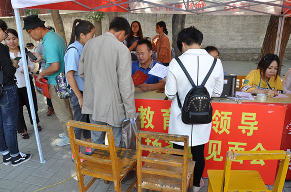 鑒于往年很多家長等不上召開家長會就著急回家,真正能參加家長會的家長寥寥無幾的尷尬局面,我系創新模式,在迎新報到點設立了“教育系領導現場家長見面會”,見面會堅持“一個都不能缺少”的原則。家長現場見面會,首先由現場接待人員主動邀請家長到達見面會點;隨后,由系領導從學校的基本概況入手,向家長們講解教育系的系況、學科建設、專業建設、人才培養方案、就業率及考研的過程等,使家長對學校和系況有了一個大體的認識;最后,由系領導就家長提出的疑問進行回答。