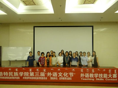 為進(jìn)一步提升師范生實踐教學(xué)水平,強化教學(xué)基本功,增強就業(yè)競爭力,2017年6月20日晚,由高等教育出版社贊助,外語系、校團委主辦,公共外語教研室承辦的呼和浩特民族學(xué)院第三屆“外語文化節(jié)”系列活動之一的外語教學(xué)技能大賽在學(xué)校圖書館一樓報告廳拉開帷幕。大賽特邀外語系薩仁格日樂、敖登副教授、陳玉紅副教授、烏云斯日古楞副教授、烏日娜副教授擔(dān)任比賽評委。