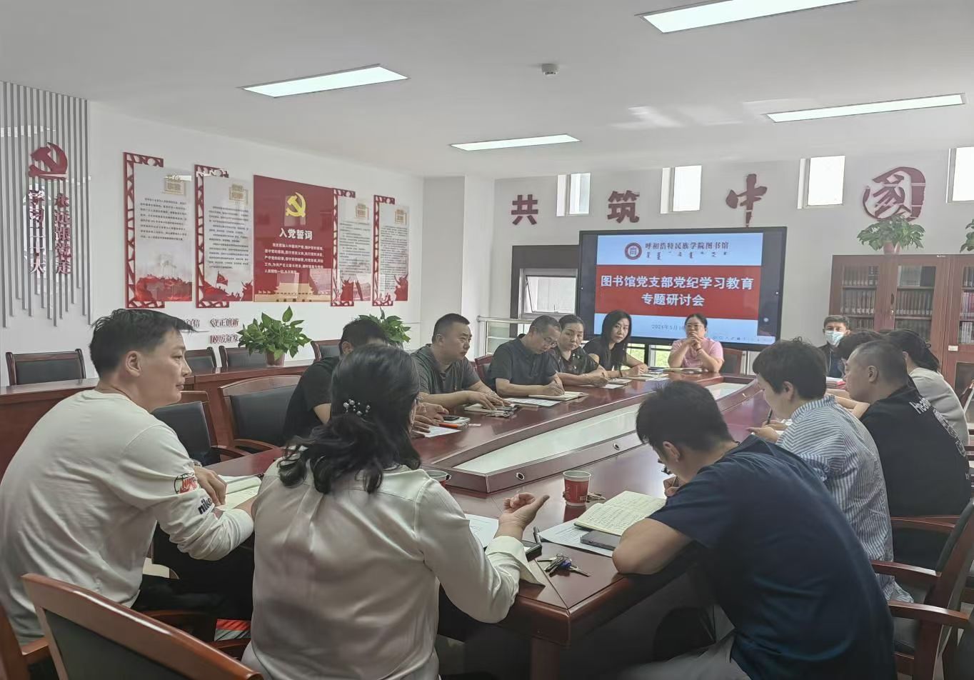 5月16日,圖書館黨支部在圖書館五樓黨員活動室開展了黨紀(jì)學(xué)習(xí)教育系列活動,活動由支部書記郝喜鳳主持,機(jī)關(guān)黨委群工委員胡斯勒到會指導(dǎo)。