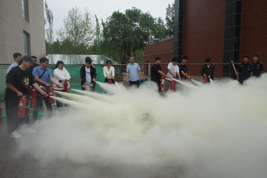 首先,在綜合樓實驗室進行授課,為師生講解消防器材的種類、使用、滅火方法,火災(zāi)逃生疏散、應(yīng)急自救、緊急救援等相關(guān)知識。隨后,開展逃生應(yīng)急演練,隨著消防警報聲的響起,師生們用濕毛巾捂住口鼻,彎腰低姿態(tài),沿著逃生路線迅速有序的撤離到安全區(qū)域。最后,大家按照滅火器“一提、二拔、三握、四壓”流程進行實戰(zhàn)滅火演練。